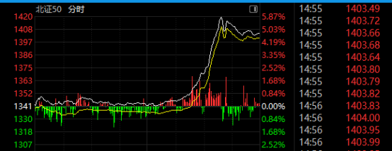 此外,北证50指数午后大幅攀升,一度大涨近6%。成份股中,天马新材涨近17%,则成电子、纳科诺尔涨超15%,戈碧迦涨近12%,并行科技等涨超8%。