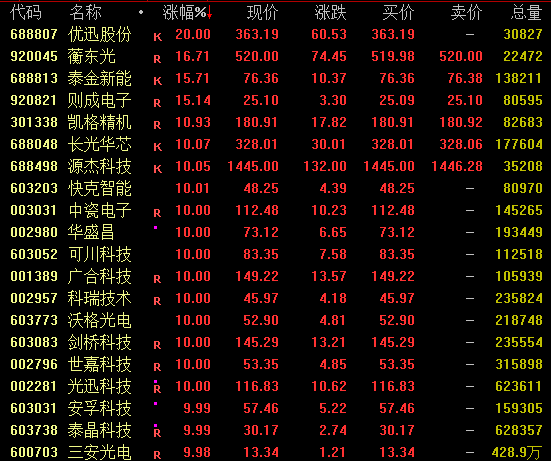 涨幅排行榜