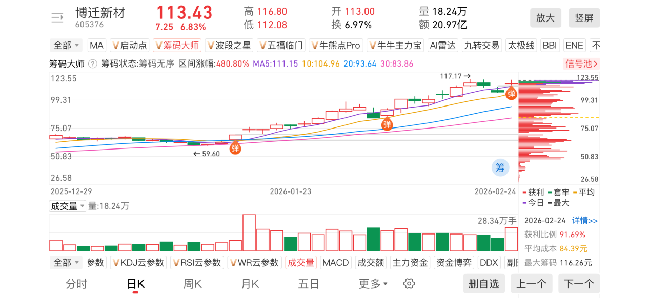 2)20260224-博迁新材-605376-【筹码大师】和【牛牛机构宝】-近期出现弹信号且底部量柱由绿转红