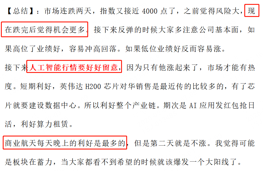 昨天一根大阴线砸下来,很多人都慌了,唯独我在文章中告诉大家,跌出来的是机会,专门点到了两个板块,商业航天和人工智能。一个涨停24家,一个涨停17家,完全踏准市场节奏。