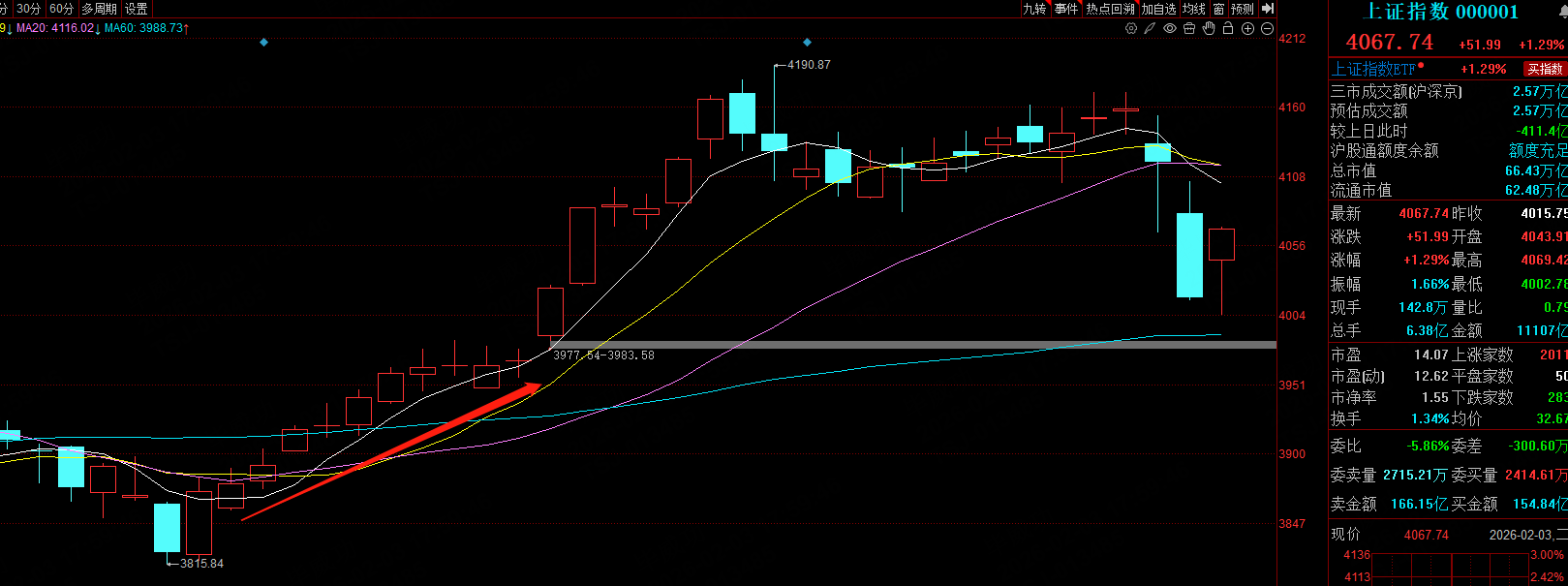 今天反弹没有放量,节前行情就看明天能不能放量站上4100点了。如果还不放量,继续暴力反弹。