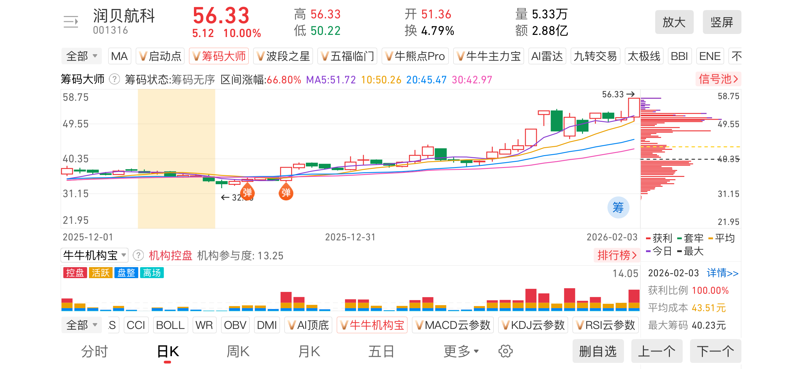 1)20260203-润贝航科-001316-【筹码大师】和【牛牛机构宝】-近期出现弹信号且底部量柱由绿转红