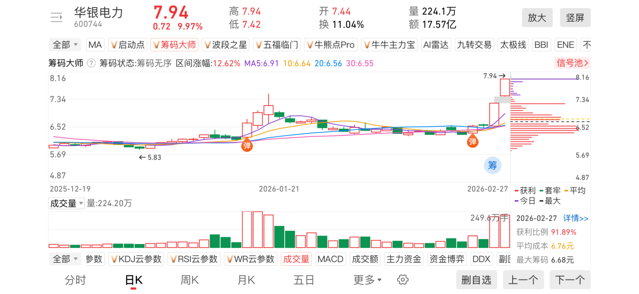 1)20260227-华银电力-600744-【筹码大师】和【牛牛机构宝】-近期出现弹信号且底部量柱由绿转红