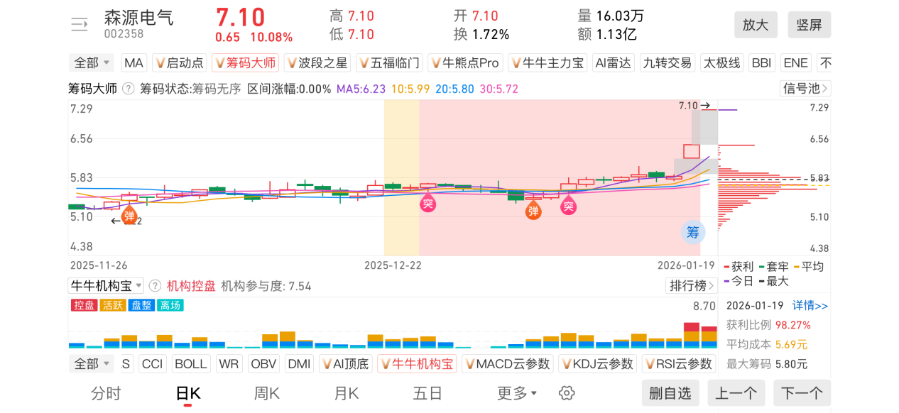 2)20260119-森源电气-002358-【筹码大师】和【牛牛机构宝】-近期出现弹信号且底部量柱由绿转红
