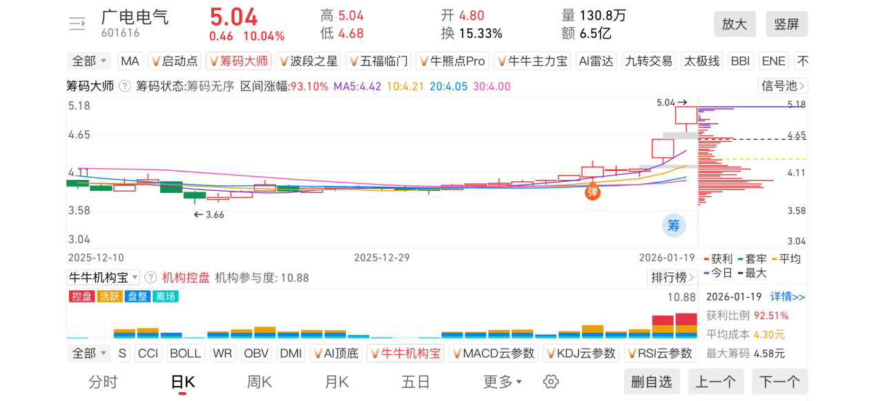 3)20260119-广电电气-601616-【筹码大师】和【牛牛机构宝】-近期出现弹信号且底部量柱由绿转红