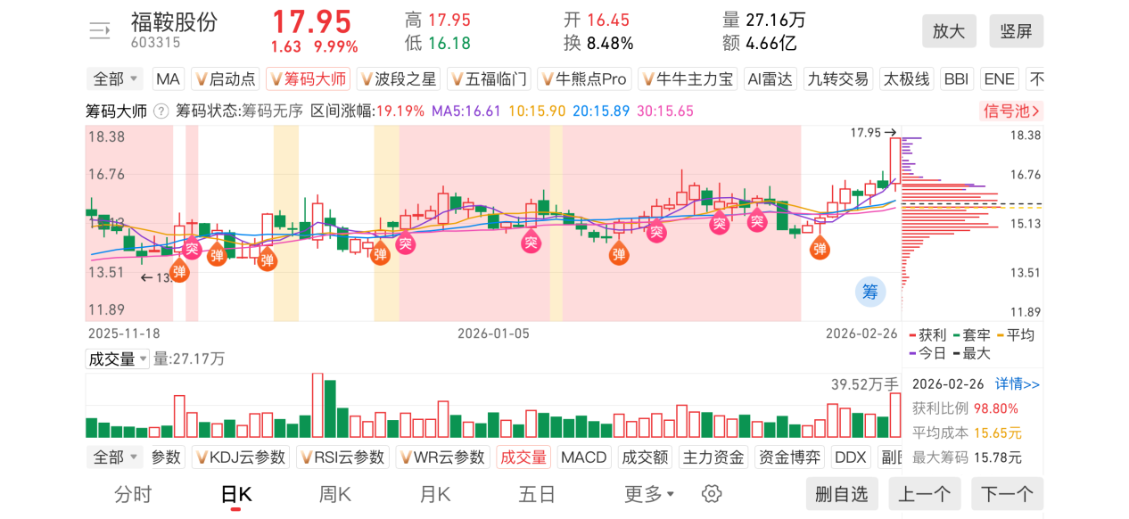 2)20260226-福鞍股份-603315-【筹码大师】和【牛牛机构宝】-近期出现弹信号且底部量柱由绿转红