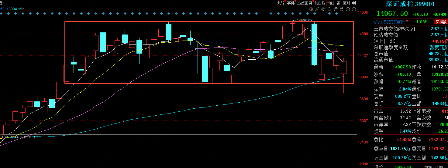 万幸的是A股韧性强劲,特别是深成指,探底回升大阳线,K线形态非常好看。不仅圆满达成了止跌指标,还超额完成了明天看涨预期的部署。看到今天深成指的收盘阳线,10个人中9个人都觉得明天会涨,这就是成功。