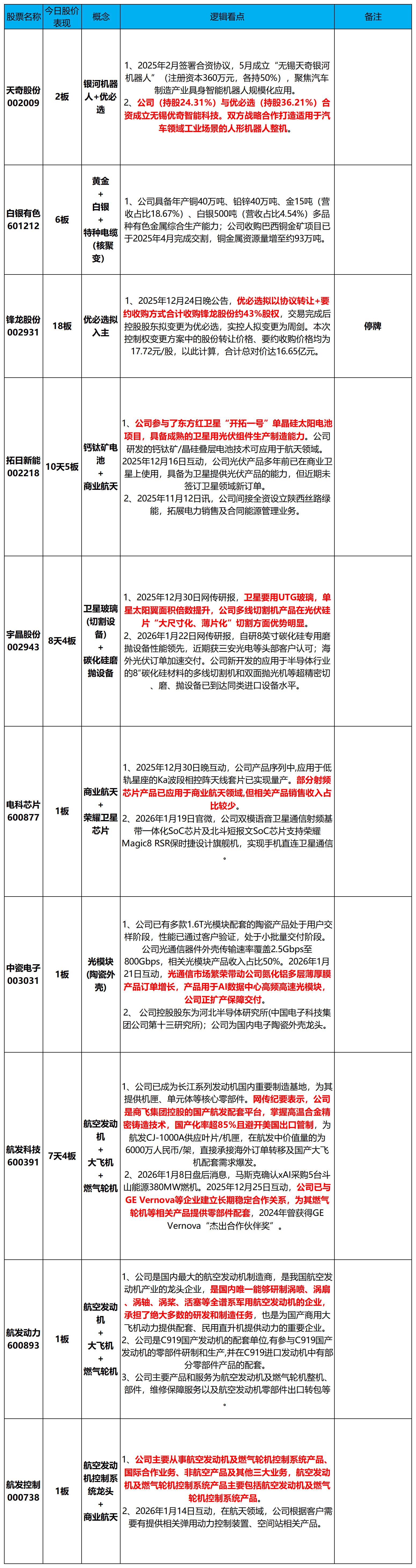 中瓷电子003031、航发科技600391、航发动力600893、航发控制000738、