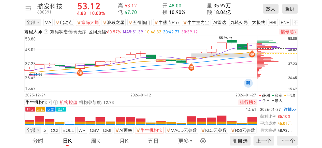 2)20260127-航发科技-600391-【筹码大师】和【牛牛机构宝】-近期出现弹信号且底部量柱由绿转红
