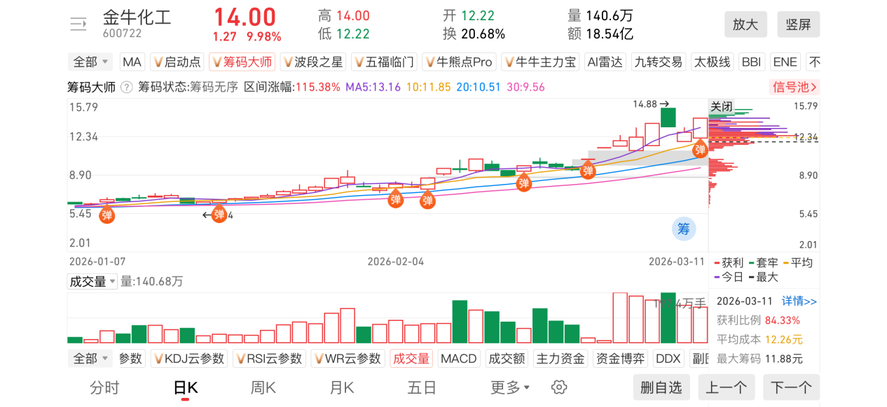 2)20260311-金牛化工-600722-【筹码大师】和【牛牛机构宝】-近期出现弹信号且底部量柱由绿转红