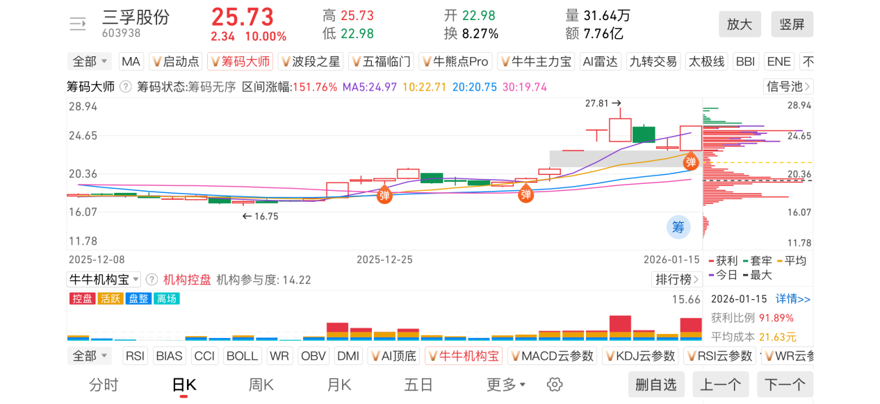 1)20260115-三孚股份-603938-【筹码大师】和【牛牛机构宝】-近期出现弹信号且底部量柱由绿转红