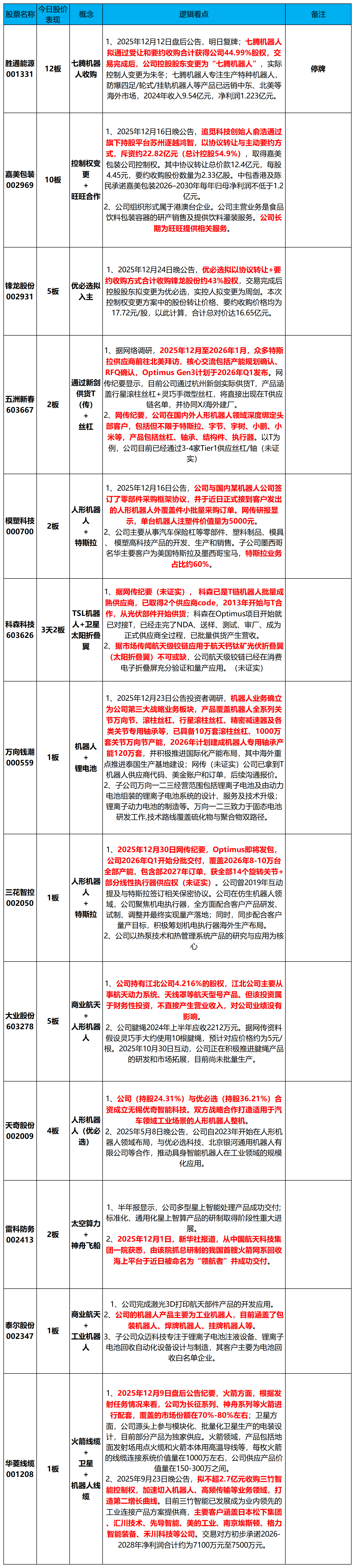 今天上涨的原因:一是特朗普政府正考虑2026年发布关于机器人的行政命令;二是有传闻指出,近期供应商陆续在北美拜访,特斯拉Optimus发包在即,市场已经开始预热。
