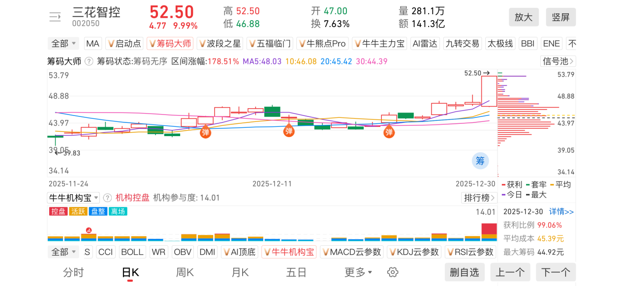 2)20251230-三花智控-002050-【筹码大师】和【牛牛机构宝】-近期出现弹信号且底部量柱由绿转红