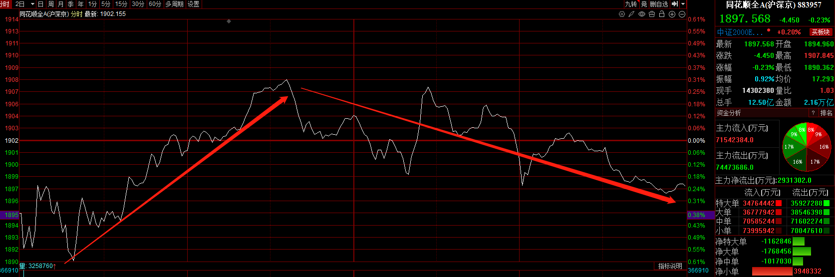 今天上午指数冲高的时候提醒大家,市场缩量别着急追涨。果然大多数股票下午就回落下来了。