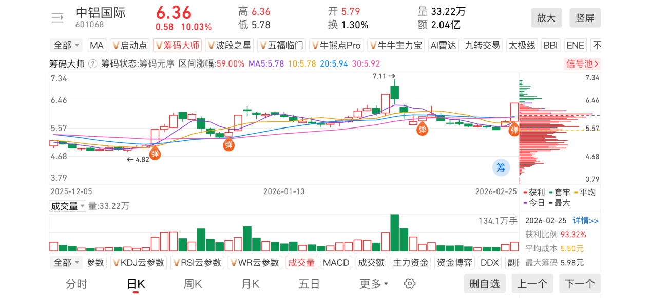 1)20260225-中铝国际-601068-【筹码大师】和【牛牛机构宝】-近期出现弹信号且底部量柱由绿转红