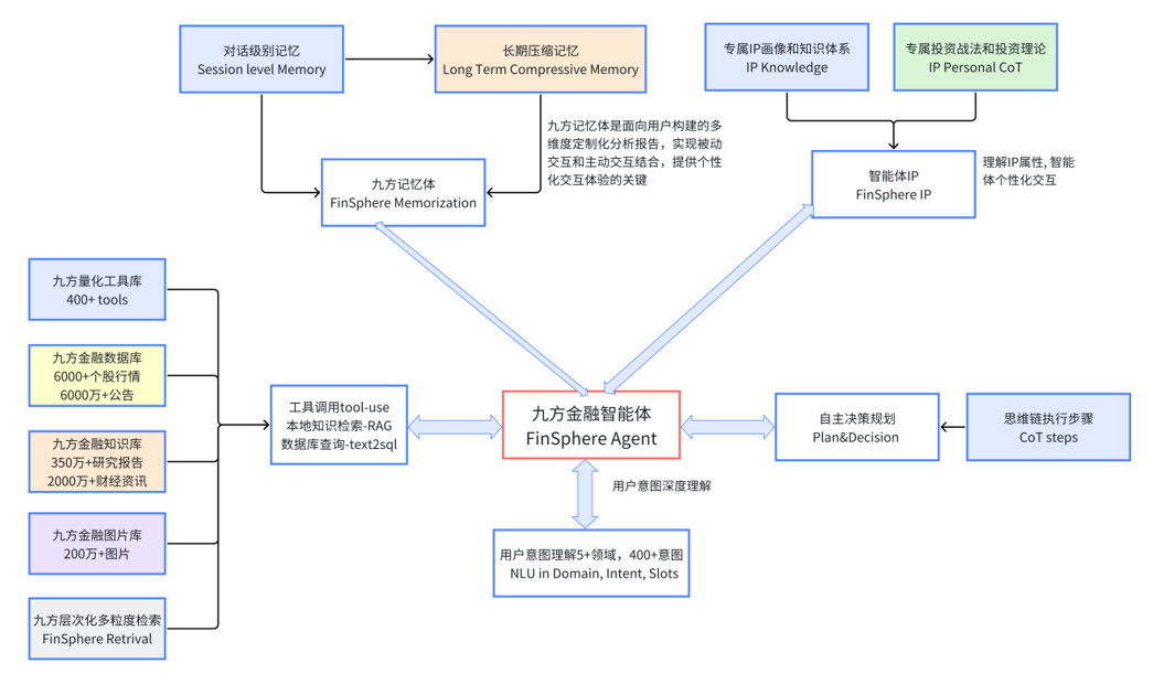 基于九方大模型仓库(即九章证券领域大模型FinSphere, QwenMax-200B, GPT4o)打造的金融场景对话智能体,具有自主思维链决策能力、工具调用能力、记忆构建能力、多模态金融分析总结能力,在金融领域展现出了巨大的应用潜力和价值。公司基于九方金融智能体打造的证券领域首款数字人九哥可深度理解用户意图,实现24*7全天候股票投资对话助手服务,为用户提供个股全面分析、大盘分析、板块分析、指数分析等实时性和历史性的金融投资咨询服务。
