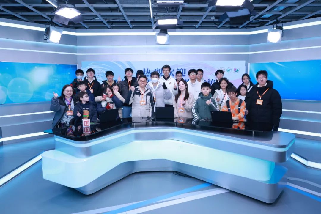 (图:香港沙田区议员邓肇峰及来访香港沙田区青年在演播间合影)