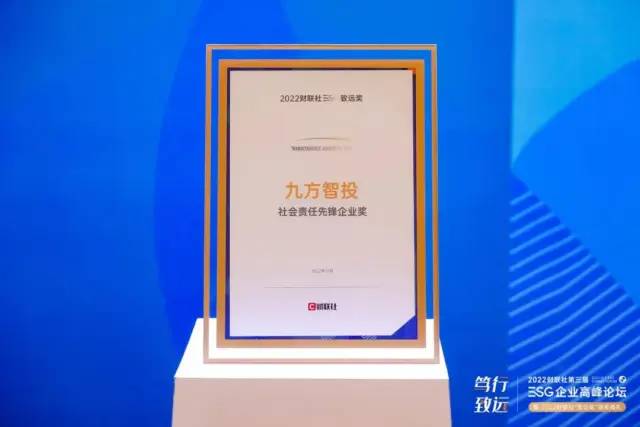 九方智投荣获“2022财联社ESG致远奖·社会责任先锋企业奖”