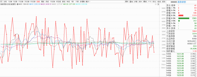 而从个股的涨跌数据来看,超过七成个股是下跌状态,在早盘还是涨跌参半,而到了下午两点却是跌多涨少局面,市场弱势正在愈演愈烈。