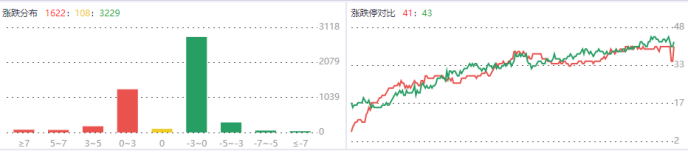 情绪面来看,今日涨停41跌停43,跌停板数量直接超过了涨停板数量,表明市场做多力量较小,亏钱效应较大,短期,操作上,要注意规避风险,在控制好仓位的基础上,也要尽量管住手、减少操作。