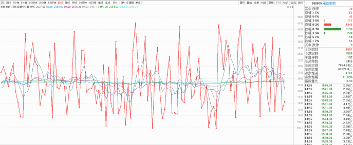 更为需要警惕的是,分时黄线在震荡走低,尤其是下午开盘后,出现了加速下行的表现。黄线代表的是个股的状态,虽然指数看起来没有太大的调整幅度,但是个股却出现了大面积走弱。