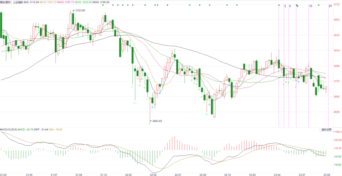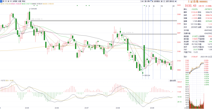 中期趋势上,还是那个观点:沪指周线与月线调整趋势不变,当前的反弹仅属于日线级别技术反弹,至10月底,指数依旧大概率会在3000点下方迎来考验(市场底的左边)。进而,迎来四季度正式的月线级别反弹,大家适当知晓下就行。