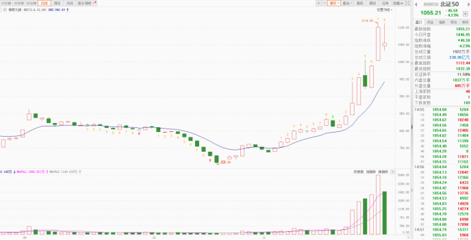 短期连续暴涨之后,目前北证50指数正处于二次九转的第8天,明日过后,或将迎来全面调整(龙头停牌核查中,预计5天后复牌)。