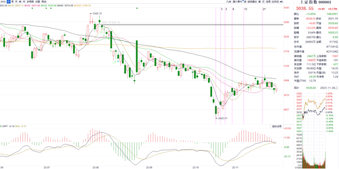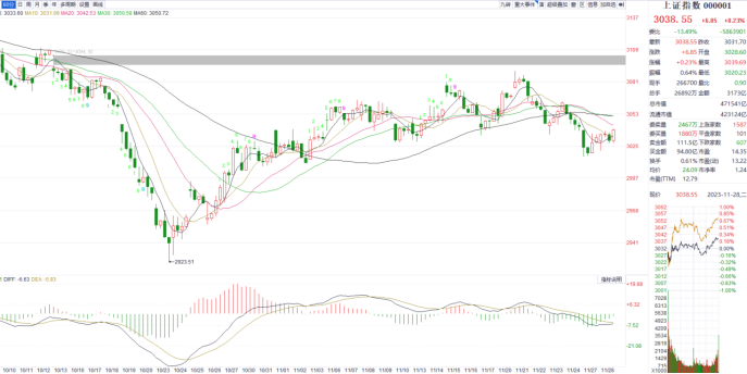 简单点说,就是沪指目前的反抽更多只是小时线级别的,反抽目标是突破3062点,极限是3089位置,其后,还需要一次回踩,方能诞生比较好的新一波低吸机遇,或者说所谓的年末炒作行情。