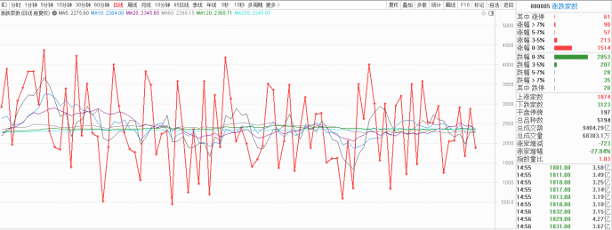 今天,大盘全天震荡调整,创业板指跌超1%,上证50指数跌超1.5%再创调整新低。板块上,AI概念股继续逆势活跃,国资云、数据方向领涨,铜牛信息20CM涨停,深桑达A、中远海科、英飞拓涨停;英伟达概念股再度大涨,鸿博股份5连板,奥比中光、景旺电子涨停;存储芯片概念股午后异动,佰维存储20CM涨停,睿能科技涨停。旅游酒店股展开反弹,峨眉山A、九华旅游、长白山涨停。下跌方面,电力股陷入调整。总体上两市个股跌多涨少,共3000股下跌,亏钱效应依旧较大。