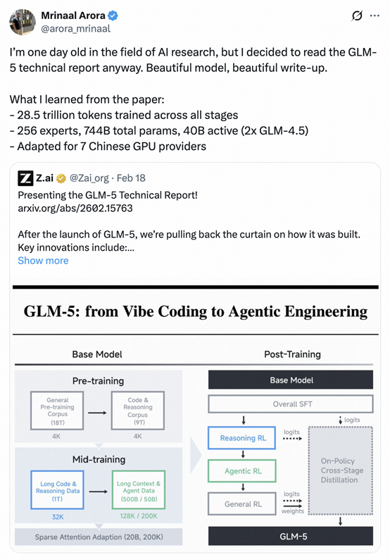 技术层面,智谱近期发布的GLM-5大模型正被广泛应用,并引发全球关注。智谱最新发布的技术报告详细解读了GLM-5的核心架构与突破,指出该模型在真实世界编程任务中展现出前所未有的能力,在处理端到端软件工程挑战方面,全面超越此前所有开源基线模型。