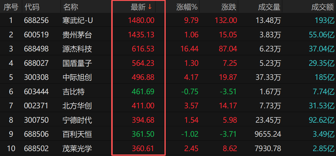 冲破600元!高价股座次生变 这只CPO概念股杀入TOP3