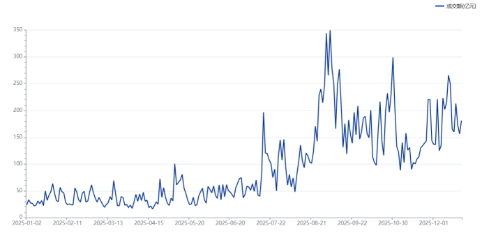 近1个月以来,新易盛股价维持涨势,并于12月17日成功突破前高,今日股价则再创历史新高,最高触及466.66元,较4月9日录得的年内最低点46.56元相比,累计涨幅已超9倍,跻身A股市场年内“10倍股”行列。从量能数据上看,新易盛自11月14日以来至今的27个交易日期间,每日成交额均在100亿元以上,资金活跃度持续高涨。