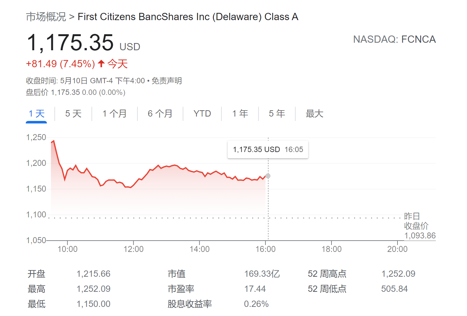 财报公布后,第一公民银行股价盘中涨幅一度达14%,随后有所收窄。截至周三美股收盘,该股涨7.45%,报1,175.35美元。今年迄今,该股累涨56%。