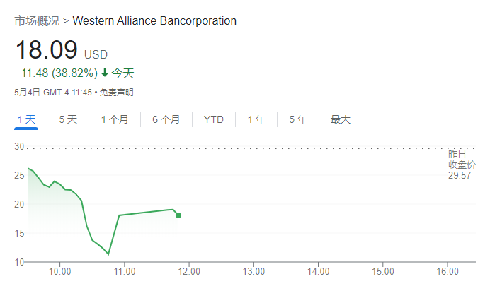 5月5日讯(编辑 牛占林)美国银行业危机持续发酵,美东时间周四,在美股开盘之后,不出意外,地区性银行股再度大跌,西太平洋合众银行跌逾50%,阿莱恩斯西部银行一度跌逾60%,第一地平线银行跌近40%。
