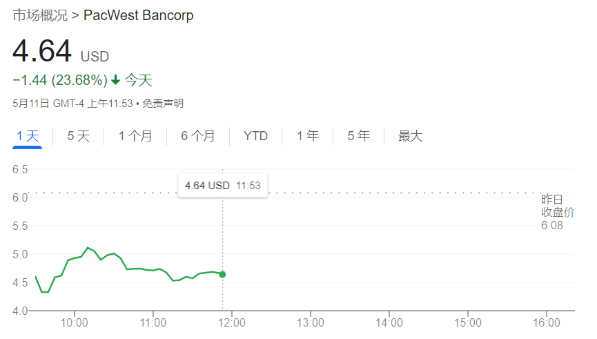 5月12日讯(编辑 牛占林)美东时间周四,西太平洋合众银行(PacWest Bancorp)发布的报告显示,该行上周存款大幅流出,打算在第二季度完成战略资产出售,以改善流动性和资本充足率。这导致其股价盘中暴跌逾20%。