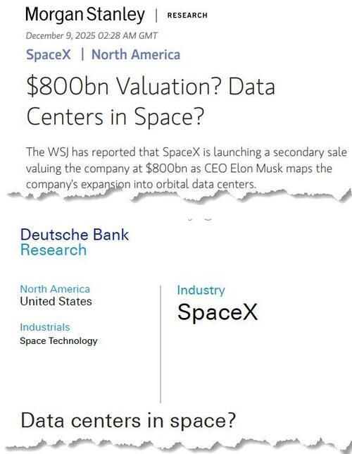 12月17日讯(编辑 潇湘)在SpaceX确认有意明年进行首次公开募股(IPO)据称寻求1.5万亿美元估值,以及马斯克强烈支持在太空部署数据中心之后,连华尔街卖方机构也开始深入研究起了这一概念。