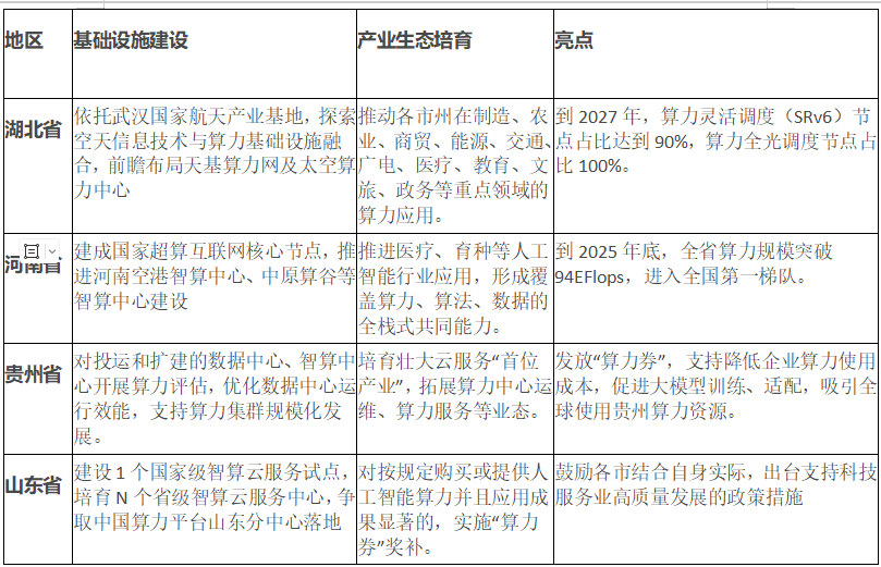 在政策层面,二、三季度包括湖北省、山东省、河南省、贵州省出台的相关政策涉及算力产业发展,涵盖了算力券发放、基础设施建设、产业生态培育等多个方面。