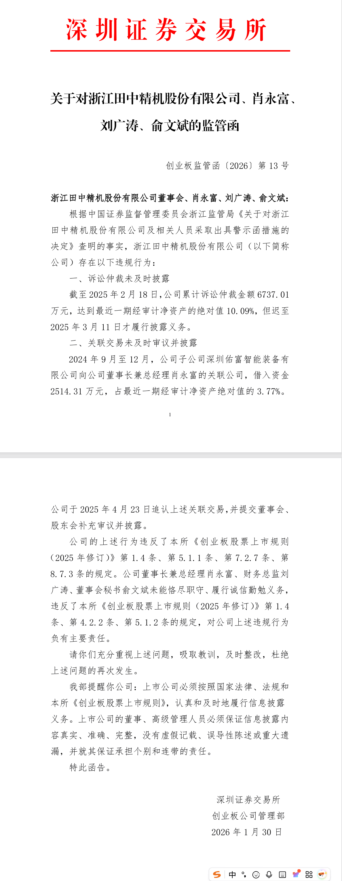 【上交所就*ST海华2025年业绩预告相关事项下发监管工作函】财联社1月30日电,上交所就青海华鼎实业股份有限公司2025年业绩预告相关事项下发监管工作函,涉及对象:上市公司,董事,监事,高级管理人员,中介机构及其相关人员。