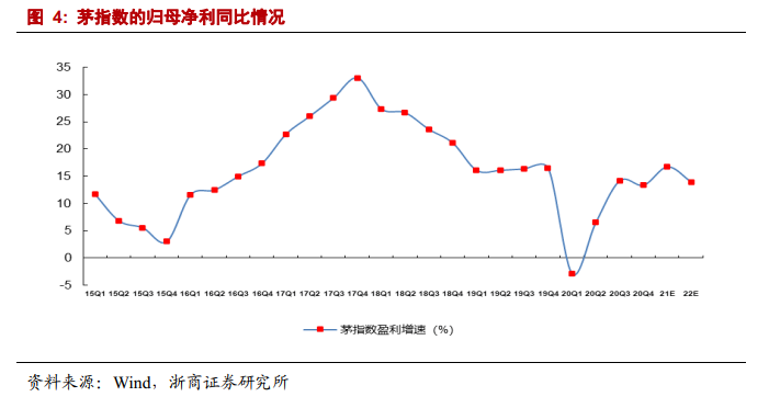 以茅指数为代表的抱团股,2021年整体景气仍较强劲。结合2020年财报和Wind一致盈利预测,整体法测算,茅指数的2020年归母净利增速达13%,2021年增速则达到17%。