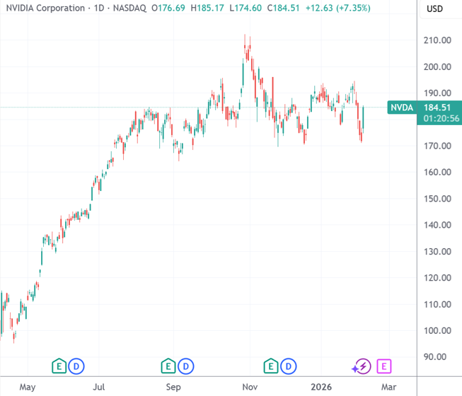 在减仓操作中,景林去年最后一个季度砍掉了超6成的英伟达持仓。全球芯片算力一哥去年11月初创下新高后,便因为市场对AI产业的循环融资担忧陷入调整,已经横盘震荡数月。