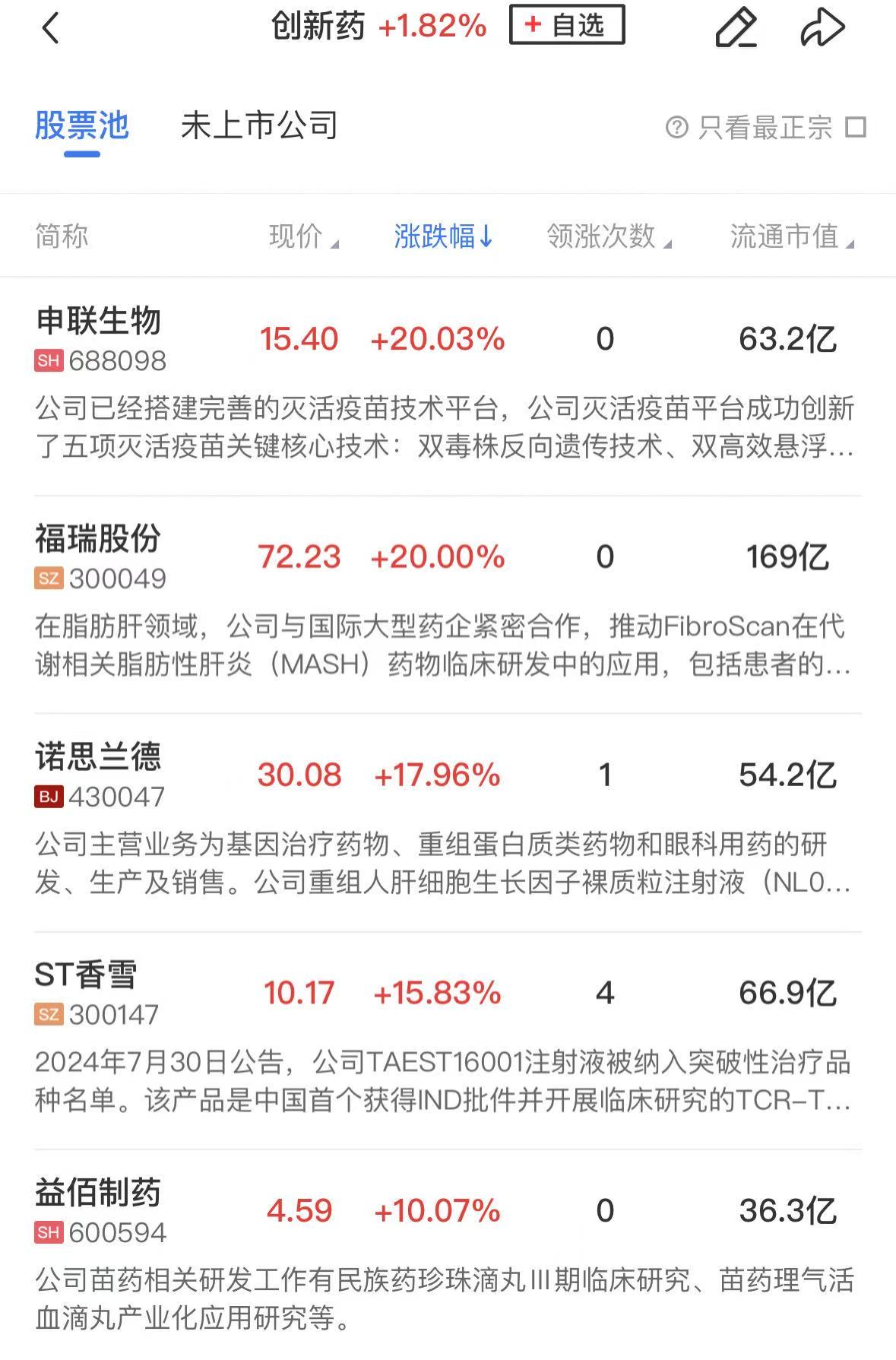 创新药再度活跃,申联生物、博济医药、立方制药、塞力医疗、新天药业涨停。