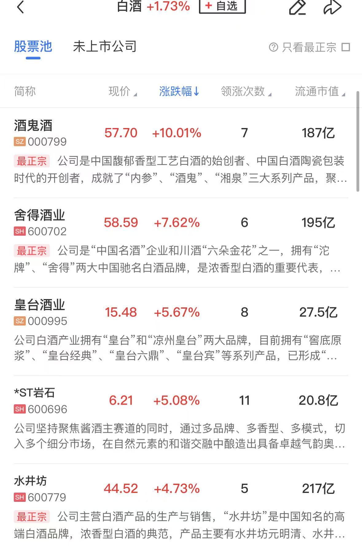 白酒股迎来反弹,酒鬼酒涨停,皇台酒业、舍得酒业、山西汾酒、金种子酒、水井坊等跟涨。