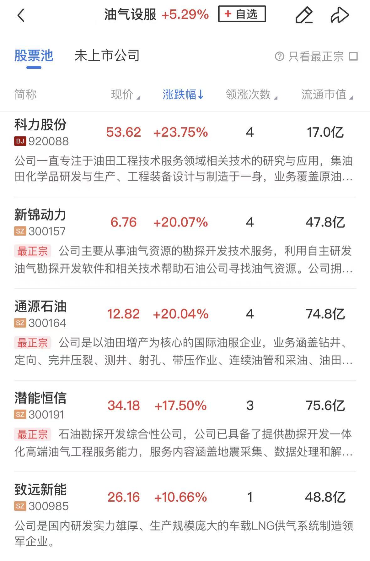 板块上,油气设服概念涨幅居前,通源石油、中油工程、准油股份、中曼石油、贝肯能源、中海油服等个股涨停。