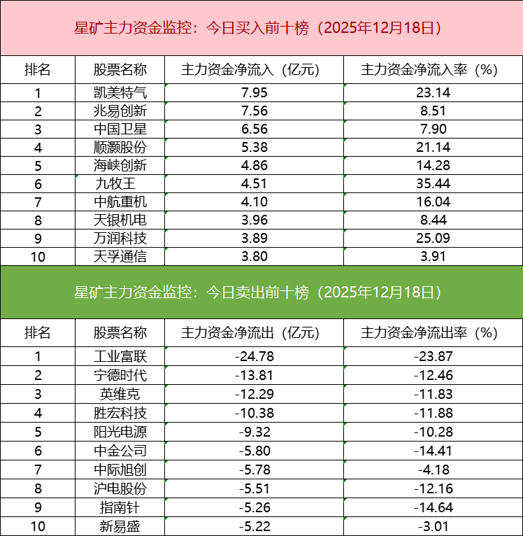 主力资金流出前十的个股所属板块较为分散,工业富联净流出居首。