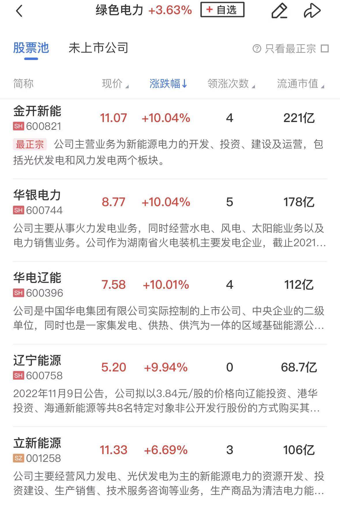 绿电概念持续走强,华电辽能7连板,韶能股份5天4板,辽宁能源2连板,迪森股份、华银电力、华光环能、中利集团等个股涨停。