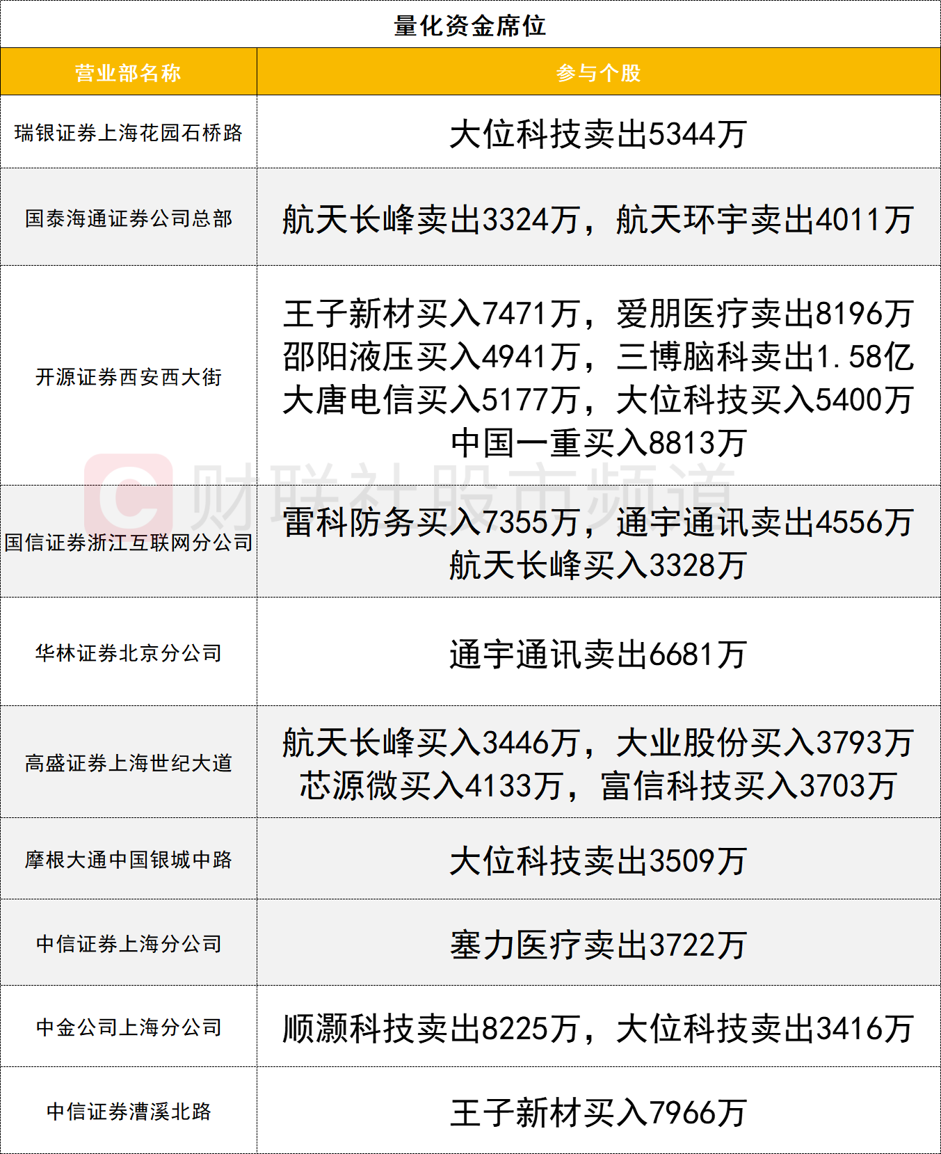 量化资金活跃度较昨日有所降低,三博脑科遭开源证券西安西大街营业部卖出1.58亿。