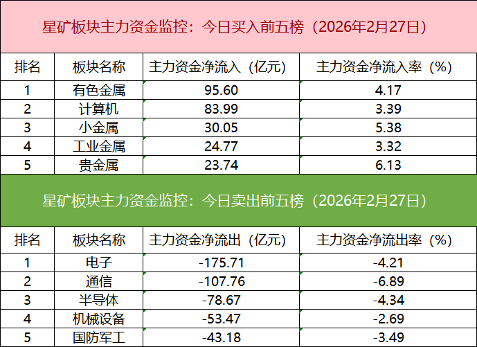 板块资金流出方面,电子板块主力资金净流出居首。