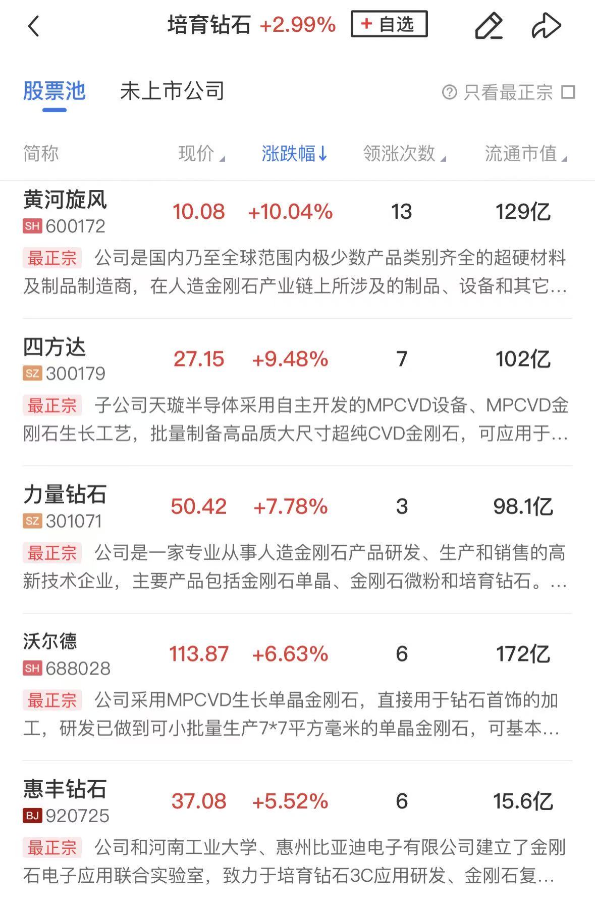 超硬材料概念快速走高,黄河旋风涨停,四方达、力量钻石、沃尔德、惠丰钻石、博云新材等个股涨幅居前。