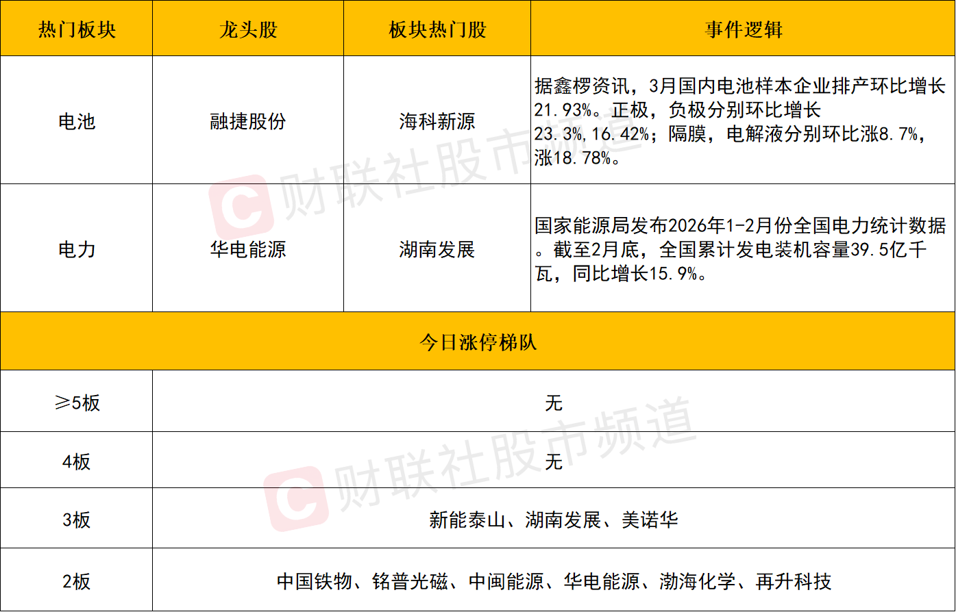 个股层面来看,今日市场超4400只个股下跌,涨停与连板个股较之前两日显著减少,连板高度更是降至3板。其中电力股分化加剧,代表市场高度的华电辽能未能封住涨停,在尾盘集合竞价遭遇资金抢跑回落,最终止步8连板。此外,韶能股份、立新能源、金开新能、协鑫能科等前期人气股同样跌超7%。不过电力板块整体还是获得资金承接而探底回升,其中华电能源尾盘封板录得13天8板,湖南发展3连板,中闽能源、广西能源、晋控电力等个股同样涨停,可以看到电力板块内部逐步走出相对良性轮涨格局,或更有利于本轮行情的延续。