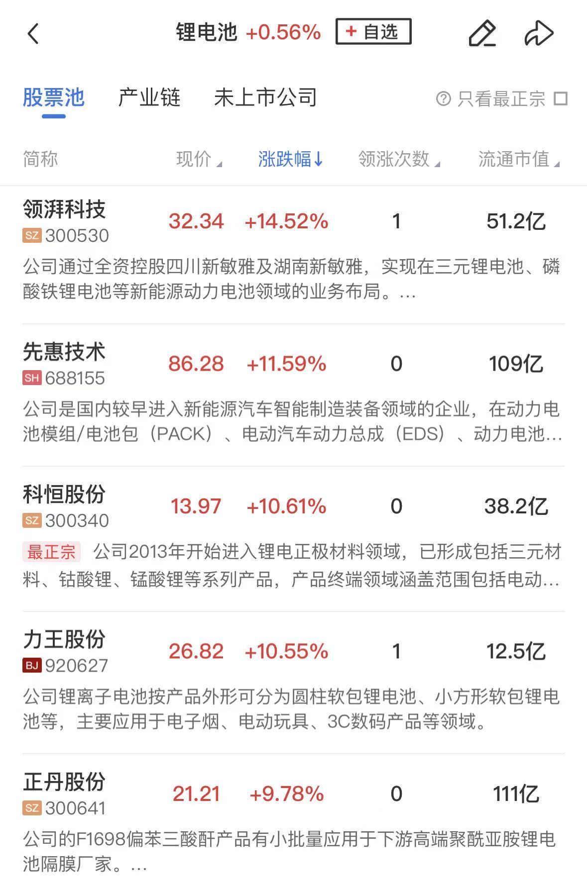 锂电板块同样逆势走强,科恒股份、力王股份、厦钨新能、天际股份、海博思创等个股涨幅居前。